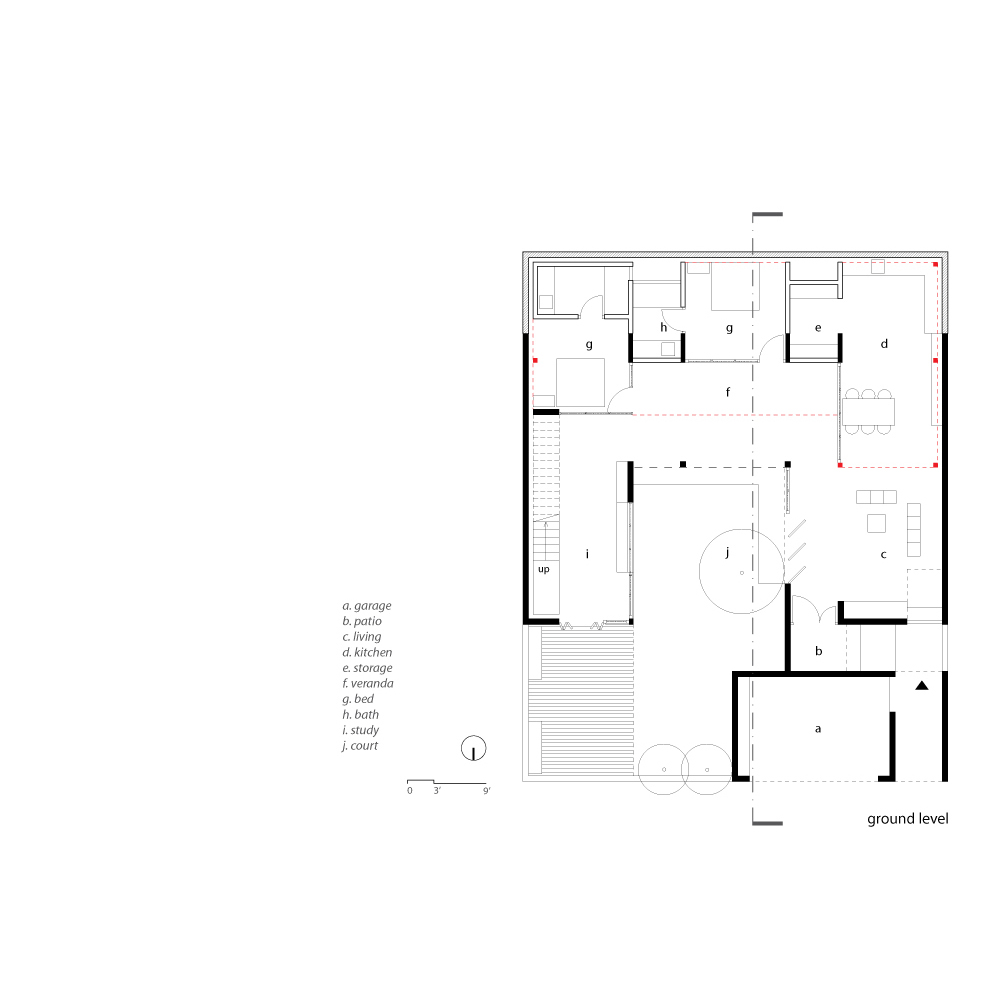 The primary volumes can accommodate functions associated with a nuclear family (kitchen, living, bedrooms and bath). Fully contained within the primary volume, an upper level can be added at a later stage whose configuration and extent can be determined according to change in domestic needs. Built of local wood, it will have an independent support system, one that allows additive growth without altering the existing spatial experience.