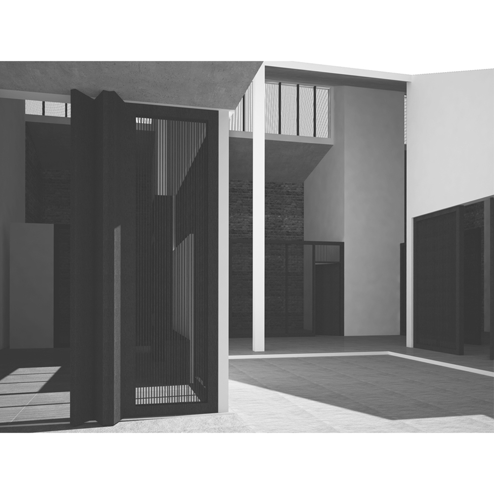 It’s inside surfaces are concrete or exposed brick and screens in wood. The variation in materiality and lighting will provide a range of qualitative experiences besides playing with the perception of moving deeper into or further from the court.